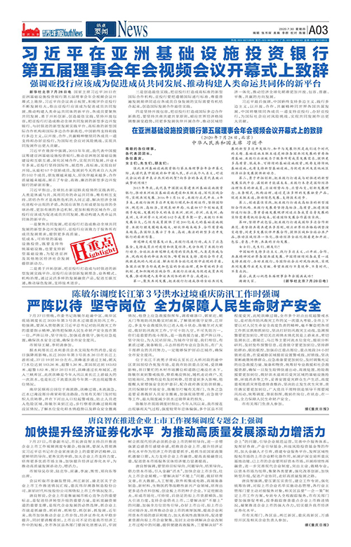 A03-习近平在亚洲基础设施投资银行 第五届理事会年会视频会议开幕式上致辞
