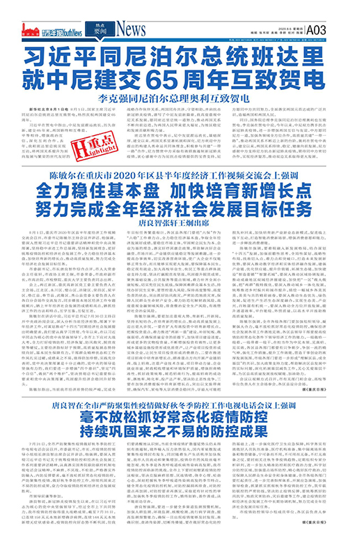 A03-习近平同尼泊尔总统班达里 就中尼建交 65 周年互致贺电