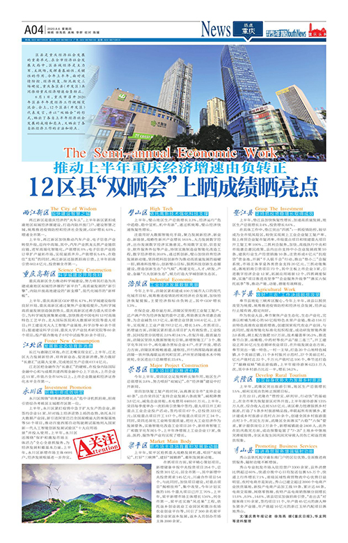 A04-推动上半年重庆经济增速由负转正 12区县“双晒会”上晒成绩晒亮点