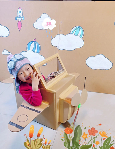 张帅虽然放弃了“口香糖贩卖机”的制作,但没有放弃继续用废纸箱制作玩具的想法。他开始收集生活中废弃的材料,逛超市时留意货架上可以制作的玩具,“除了看实体的玩具,我有时候走在路上都会寻找灵感,很多制作灵感都是一瞬间想到的。当然,也会经常问问女儿想要什么玩具。”