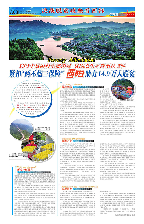 A08-130个贫困村全部销号 贫困发生率降至0.5% 紧扣“两不愁三保障” 酉阳助力14.9万人脱贫