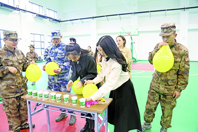 活动中,女嘉宾们进入营区参观内务,了解连队文化,观看队列表演。随后,参加活动的男女嘉宾通过“筷乐传递”“气球传纸杯”等一系列趣味活动,进一步加深了彼此之间的印象,将现场气氛不断推向高潮。