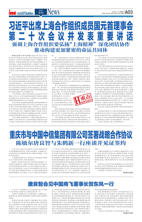A03-习近平出席上海合作组织成员国元首理事会 第二十次会议并发表重要讲话