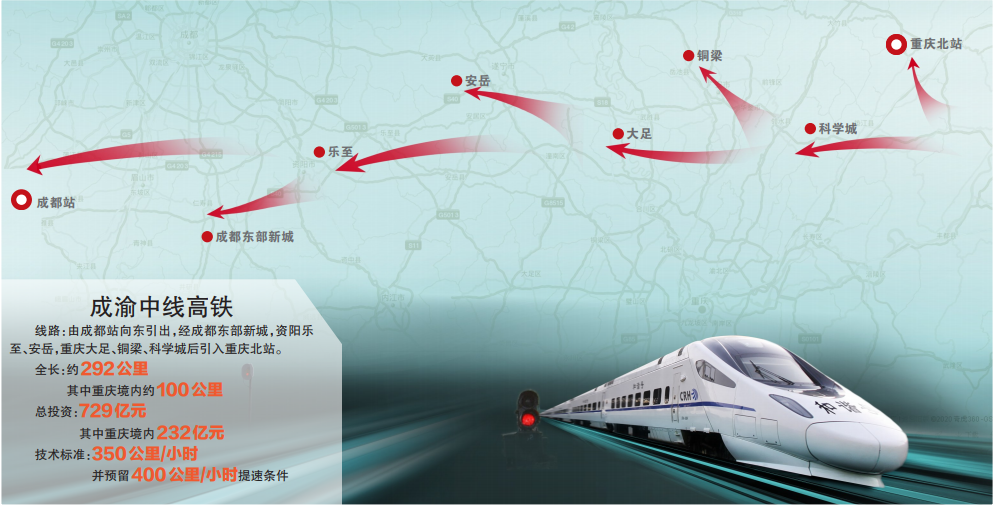 作为成渝地区双城经济圈战略的先行工程和示范工程,是重庆、成都两大中心城市间客运核心通道。