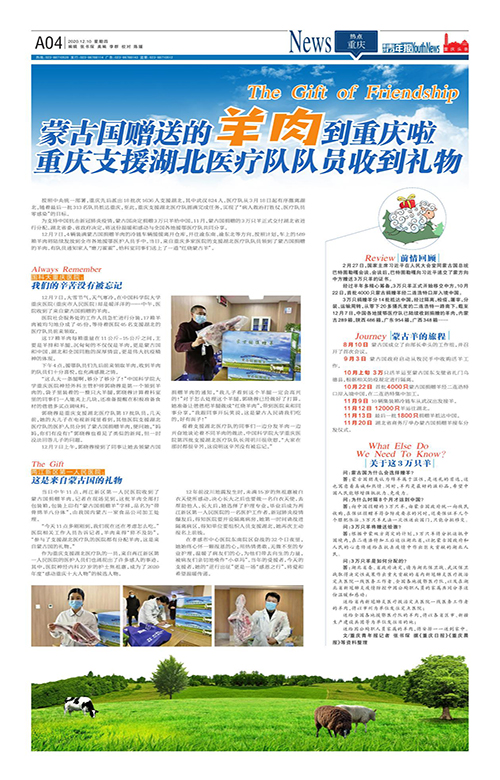 A04-蒙古国赠送的羊肉到重庆啦 重庆支援湖北医疗队队员收到礼物