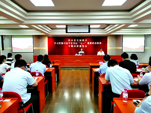 张继军在主持宣讲报告会时指出,学习宣传贯彻习近平总书记“七一”重要讲话精神是当前和今后一个时期一项重大政治任务。直属机关全体党员干部要进一步深化学习领会,把深入学习贯彻习近平总书记“七一”重要讲话精神作为党史学习教育、“四史”宣传教育的核心内容,教育党员干部增强“四个意识”、坚定“四个自信”、做到“两个维护”,牢记“国之大者”,切实践行为党育人的初心使命,推动党史学习教育不断取得新成效。要进一步做好宣传阐释,充分运用组织化学习方式,创新开展网络宣传阐释,用好党史红色资源和现实成就教材,有效发挥市级青年宣讲分队、186支青年宣讲小分队作用,走进基层、走进青年广泛开展宣传宣讲,让习近平总书记重要讲话精神在青少年中入脑入心,引导青少年不断增强做中国人的志气、骨气、底气。要进一步抓好贯彻落实,以深学笃用习近平总书记“七一”重要讲话精神为动力,全面贯彻党中央决策部署和市委工作要求,加强青少年思想政治引领、深入实施青春建功“十四五”行动、更好服务青少年成长发展、持续纵深推进共青团改革,扎实推进“我为群众办实事”“我为青年做件事”实践活动等,团结凝聚广大青少年以实际行动践行“请党放心,强国有我”的庄严承诺,为实现第二个百年奋斗目标贡献青春力量。