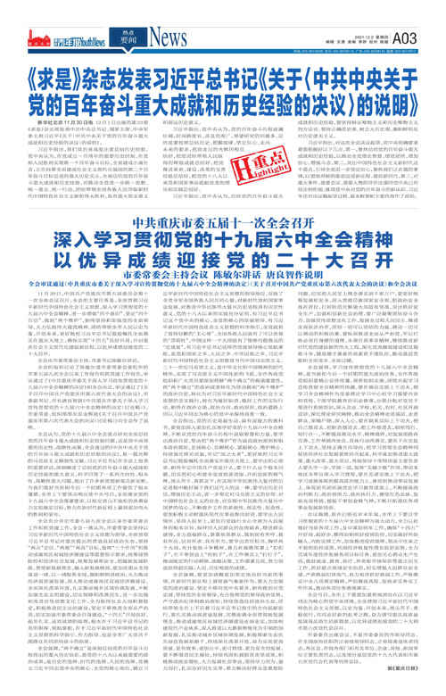 A03-《求是》杂志发表习近平总书记《关于〈中共中央关于 党的百年奋斗重大成就和历史