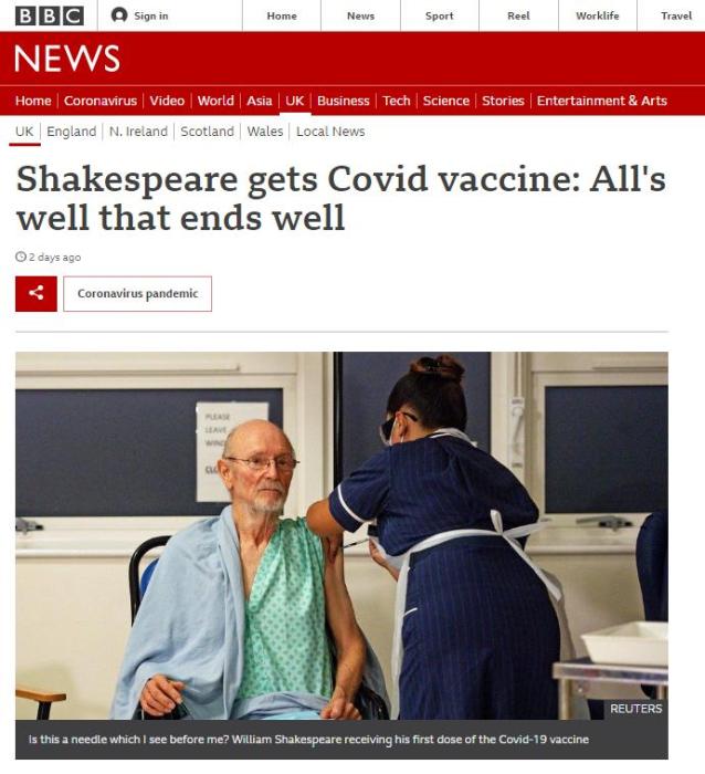 辉瑞疫苗获美专家小组支持“莎士比亚”已经接种?