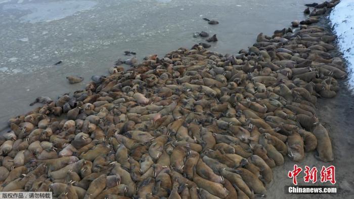 呼朋引伴开派对?北极圈数千只海象上岸“社交”