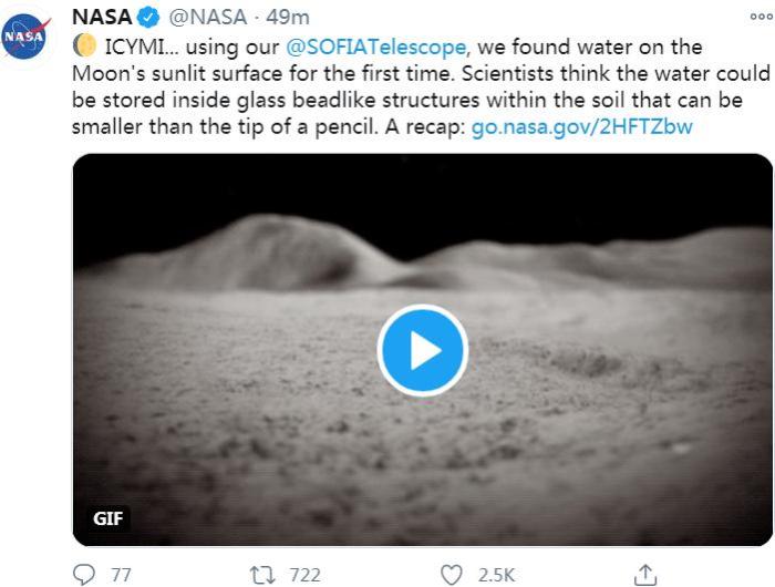 月球表面太阳照射处也存在水?NASA公布最新发现