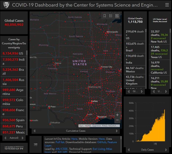 约翰斯·霍普金斯大学:全球新冠肺炎确诊病例超4000万