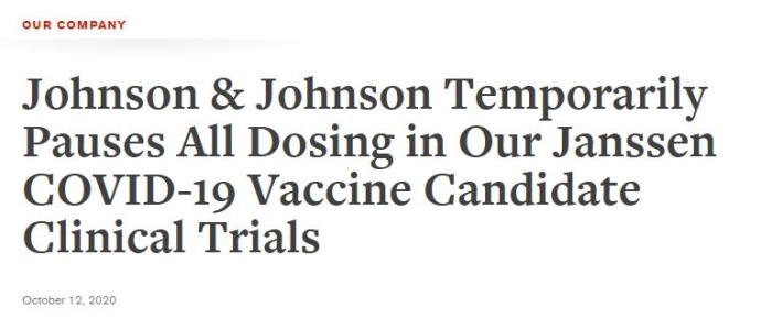 强生公司暂停新冠疫苗研究接种者出现不明原因症状