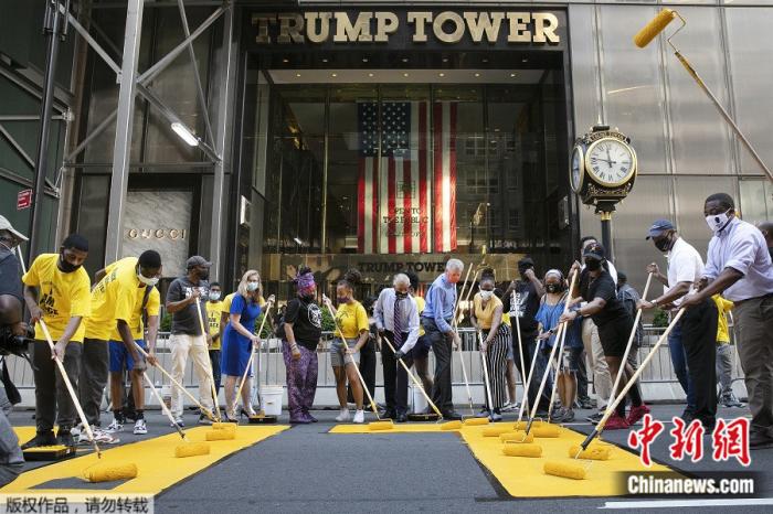 特朗普大厦前遭“动土”纽约市长亲自涂反歧视标语
