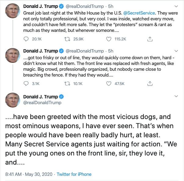 特朗普警告示威者别越界:会遇到最凶狠的狗及武器