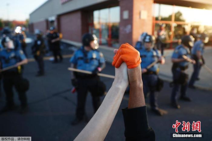 警察跪杀男子点燃美国种族怒火有人开始焚烧国旗……