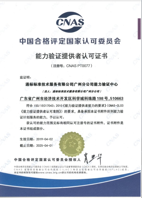SGS通标广州分公司能力验证中心通过CNAS PTP认可