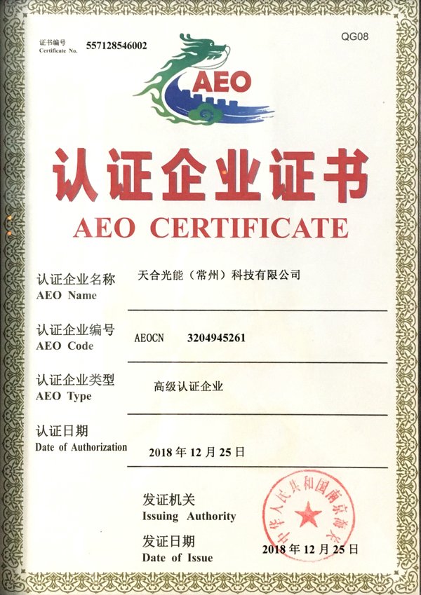 天合科技获评海关AEO高级认证企业